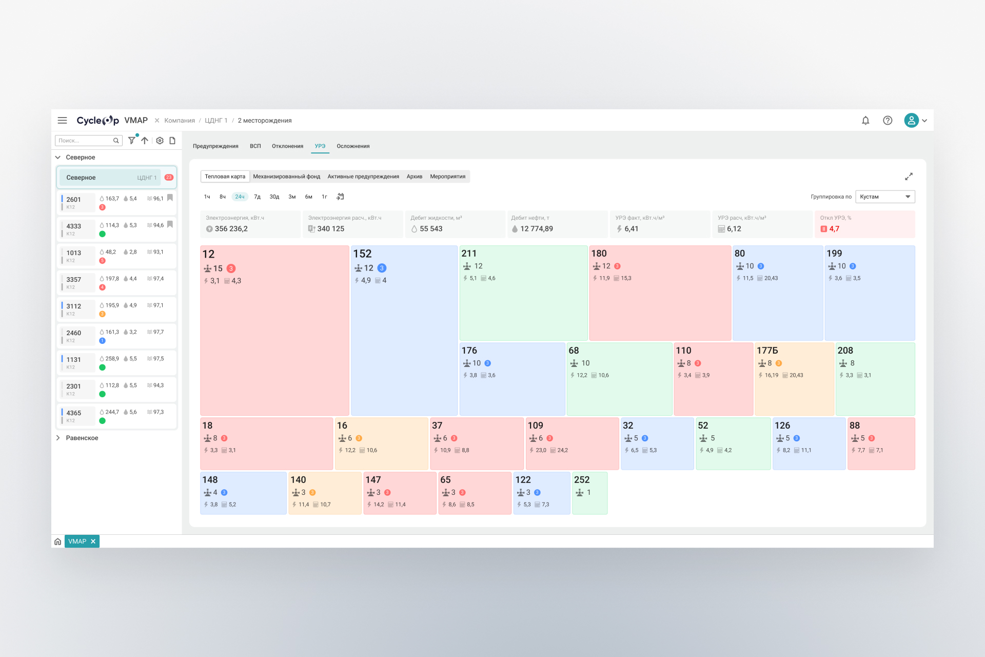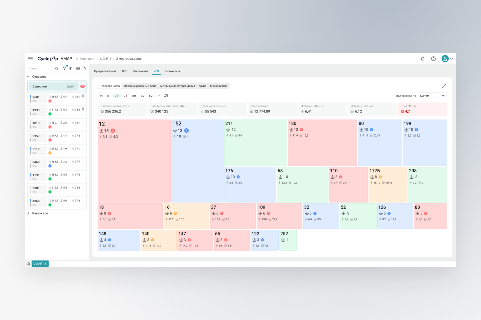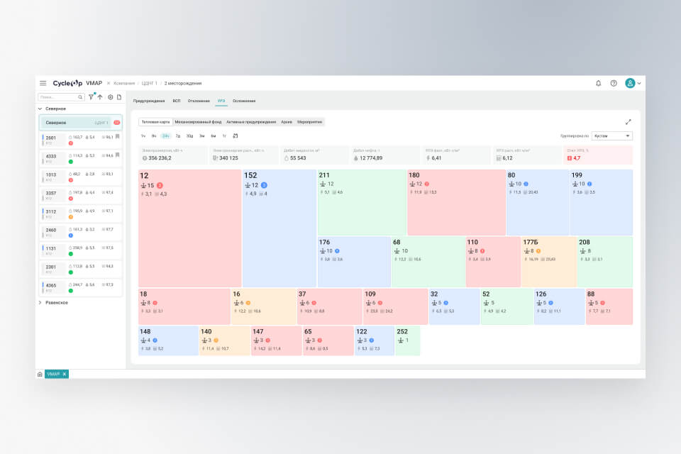 CycleOp VMAP позволяет отслеживать работу скважин и оборудования в реальном времени, выявляя отклонения ещё до наступления аварийных ситуаций.